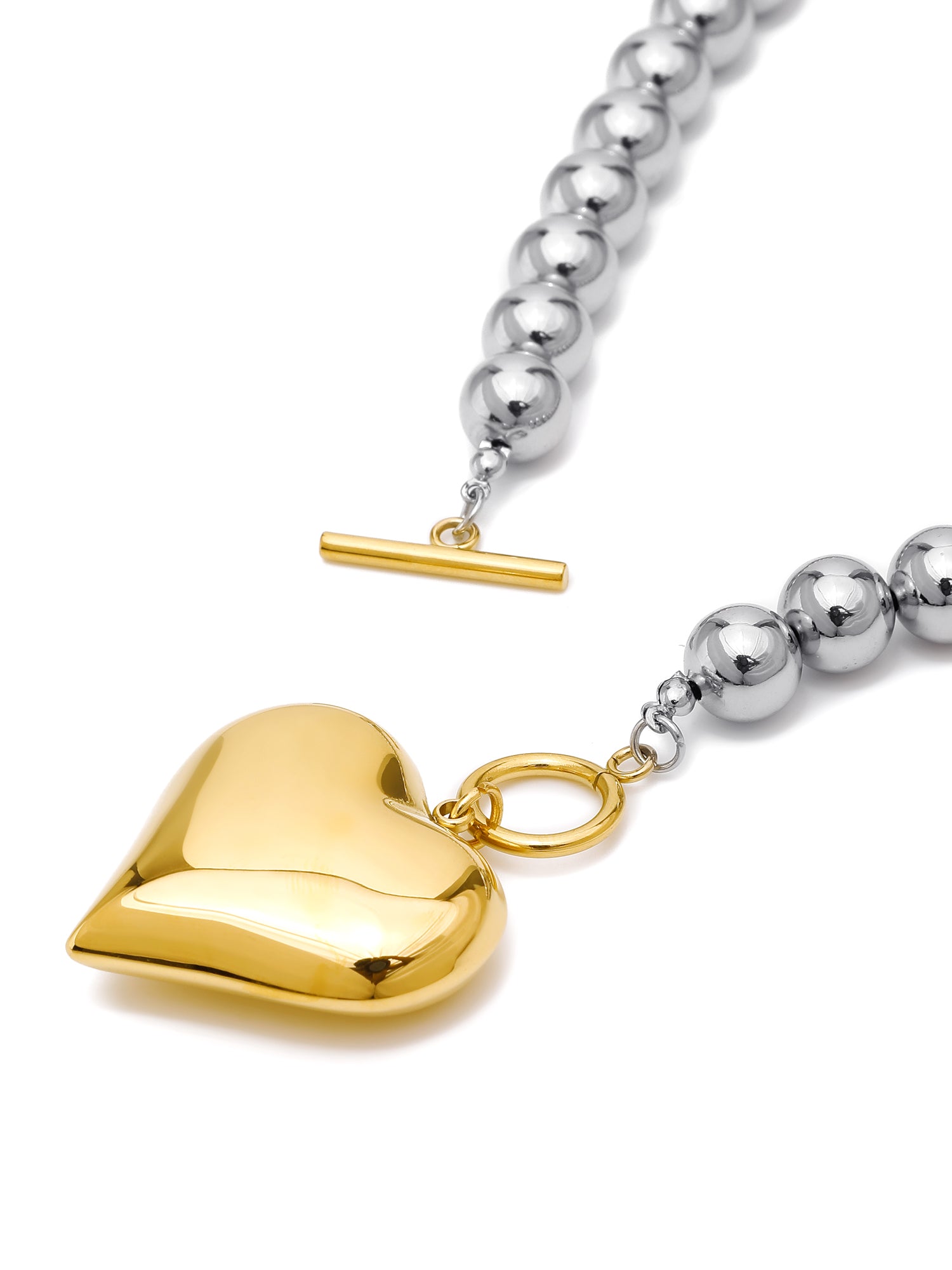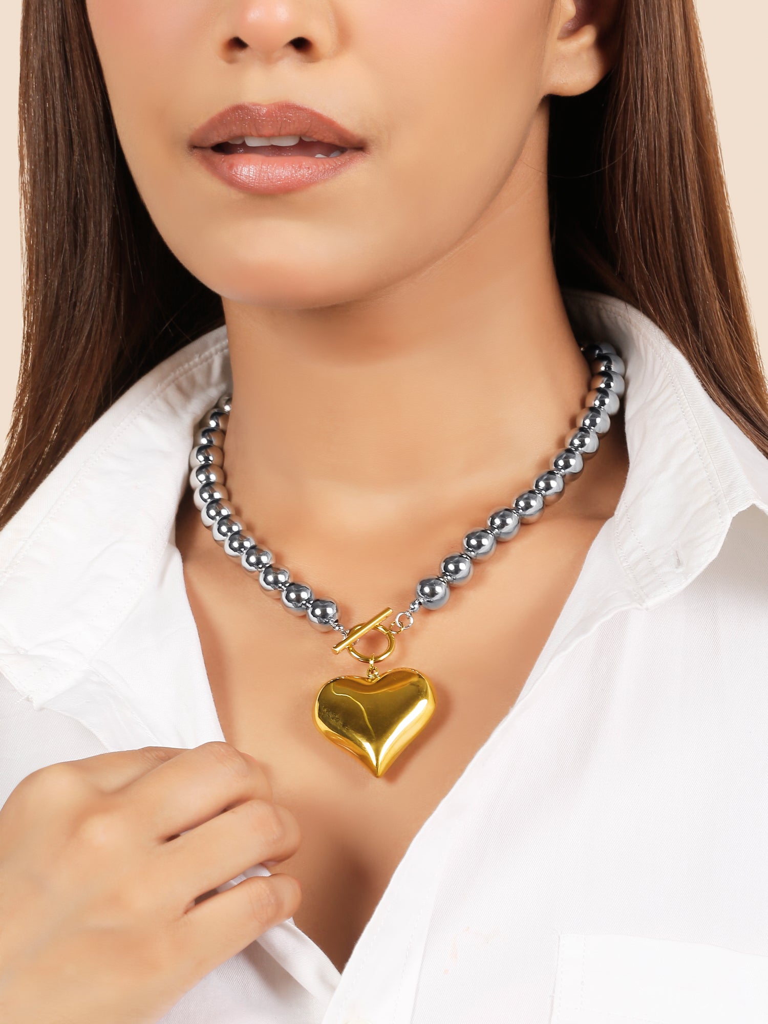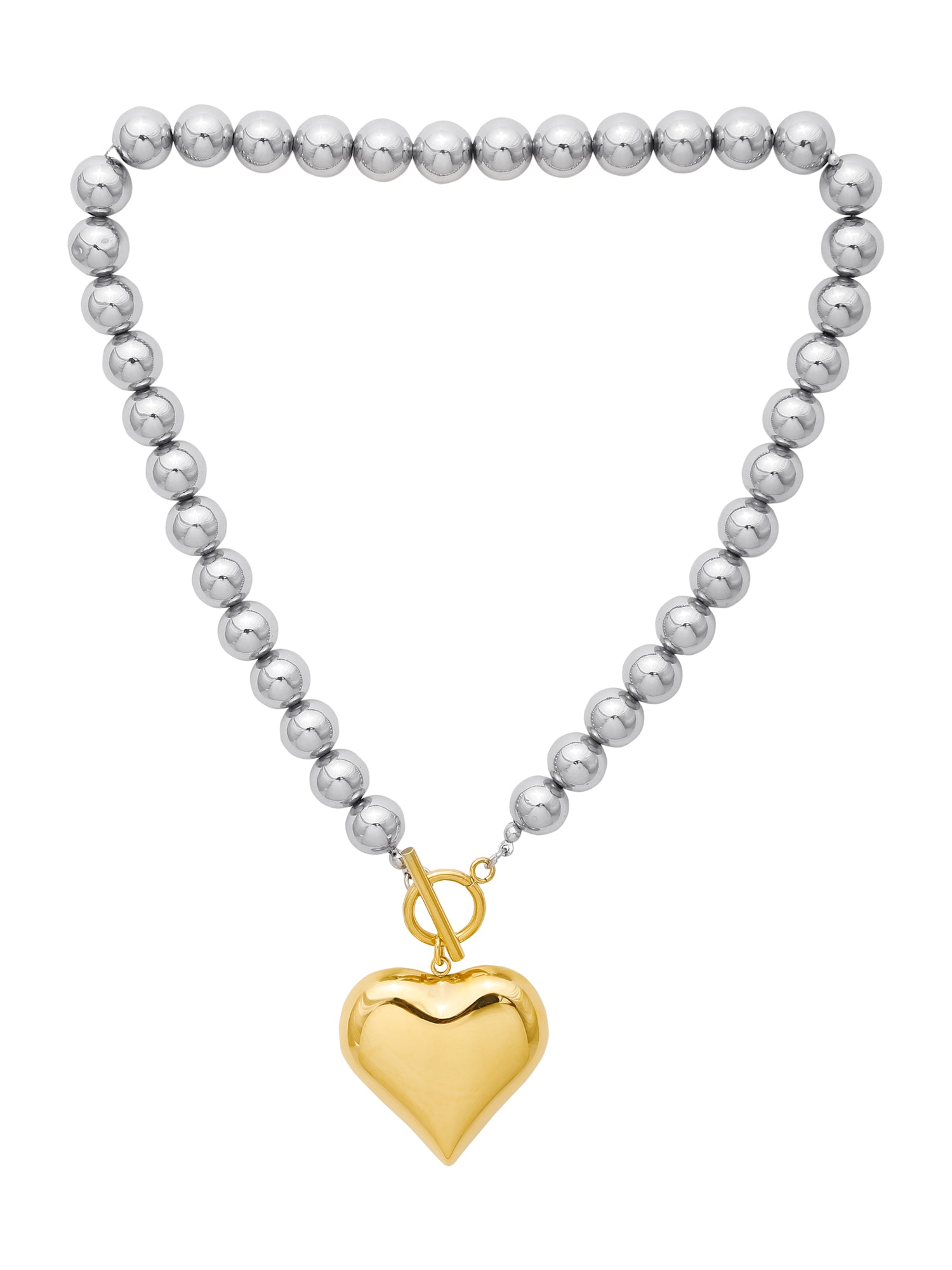 Crafted with premium stainless steel beads in silver and finished with an 18k gold-plated heart, this necklace is your go-to for standing out - whether you’re at a party, a music fest, or on vacation.