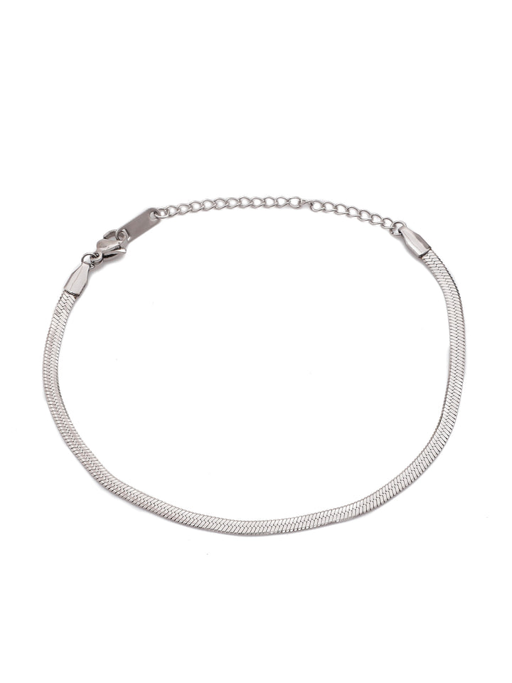 2 Pcs Flat Silver Snake Chain & Bracelet Set