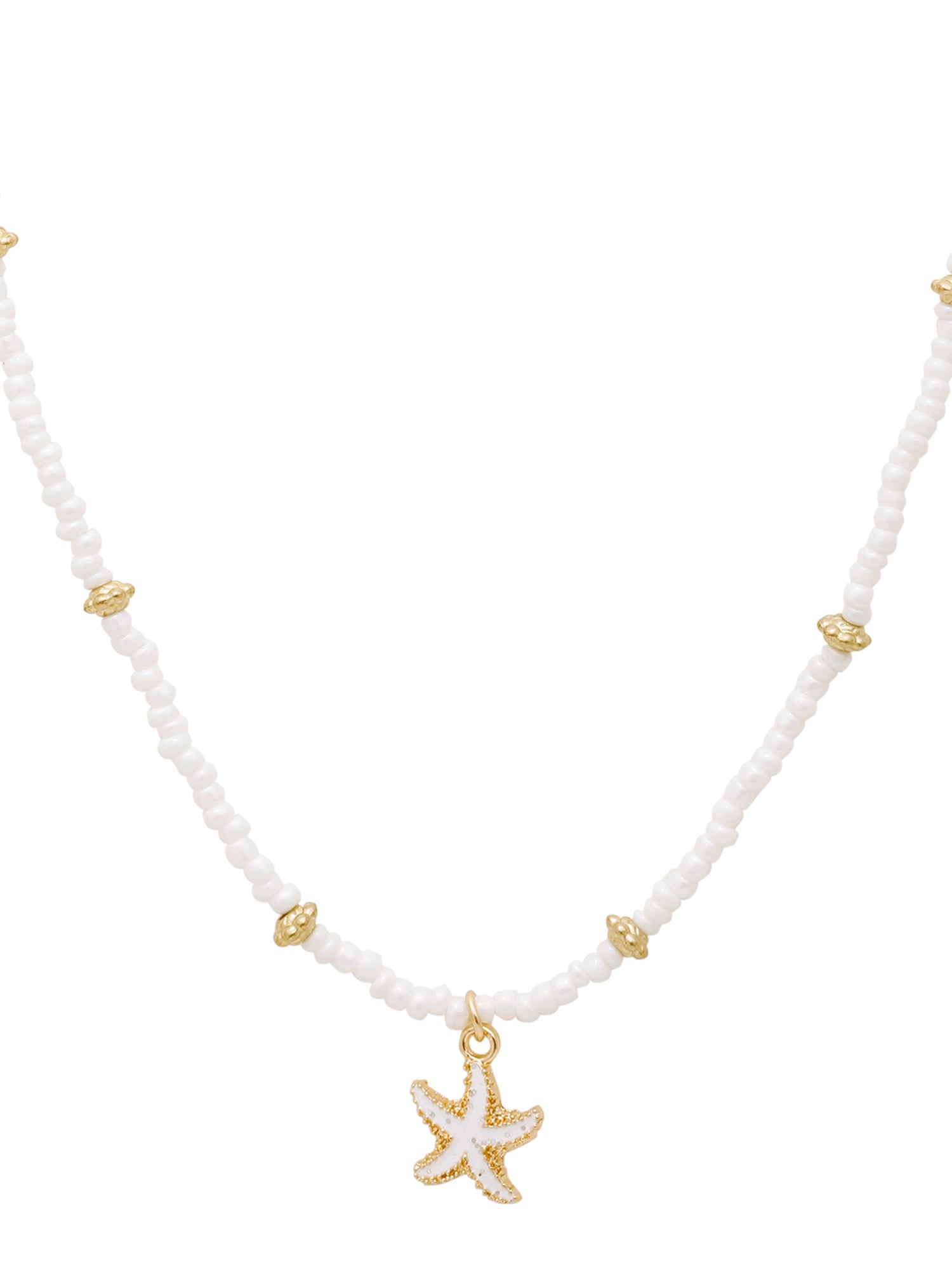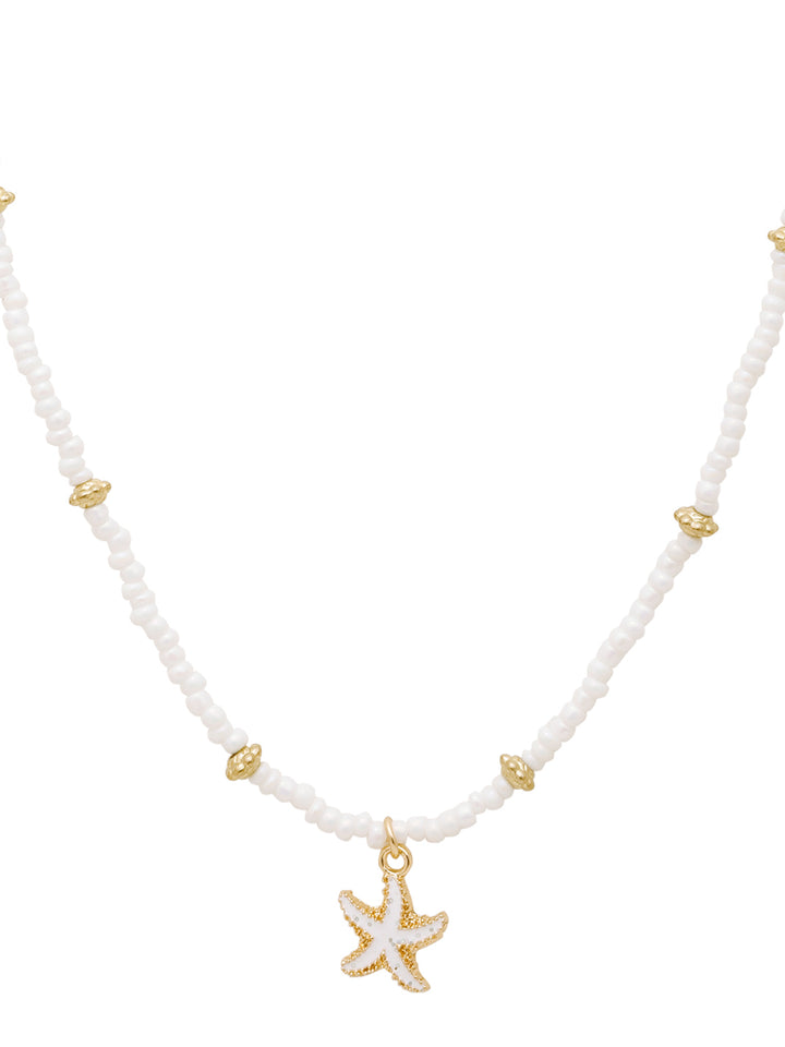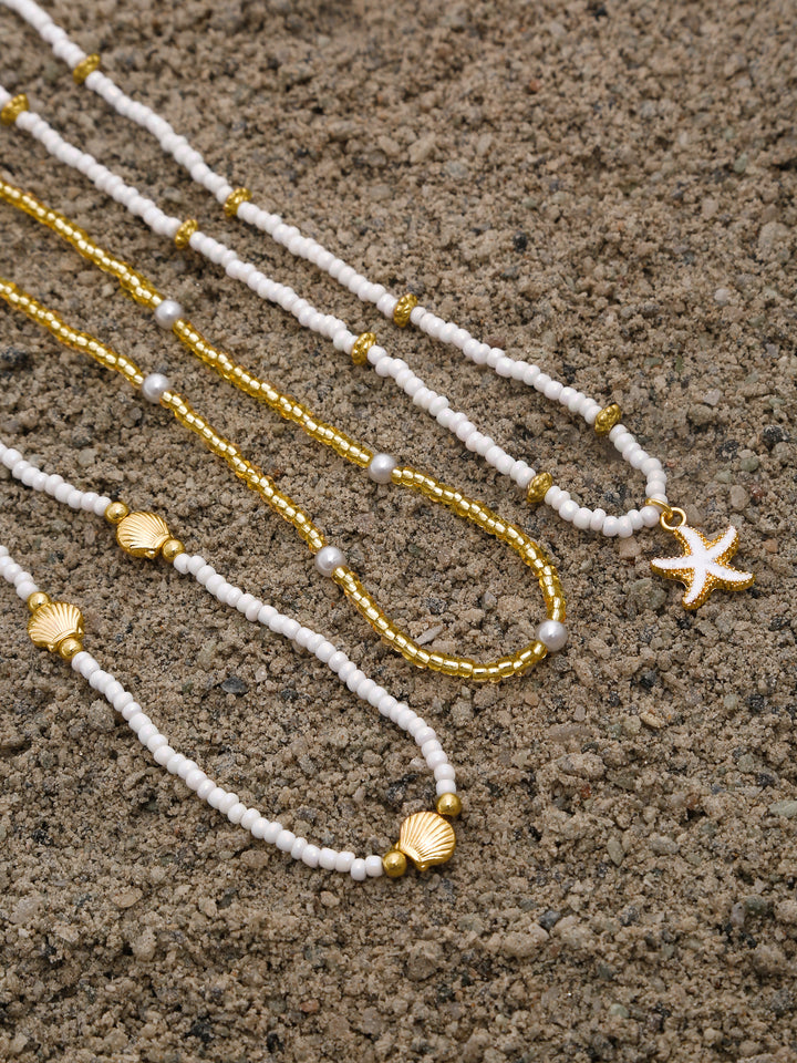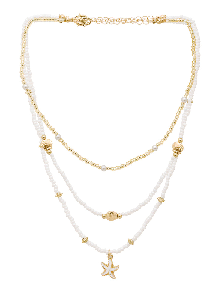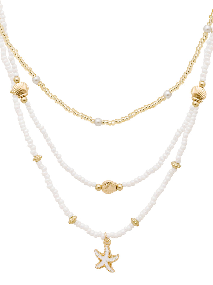 3 Pcs Rice Bead Starfish & Shell Layered Necklace Set