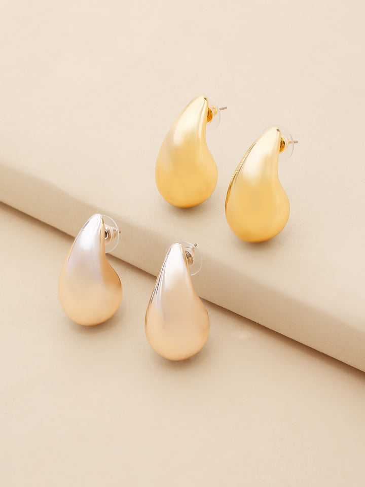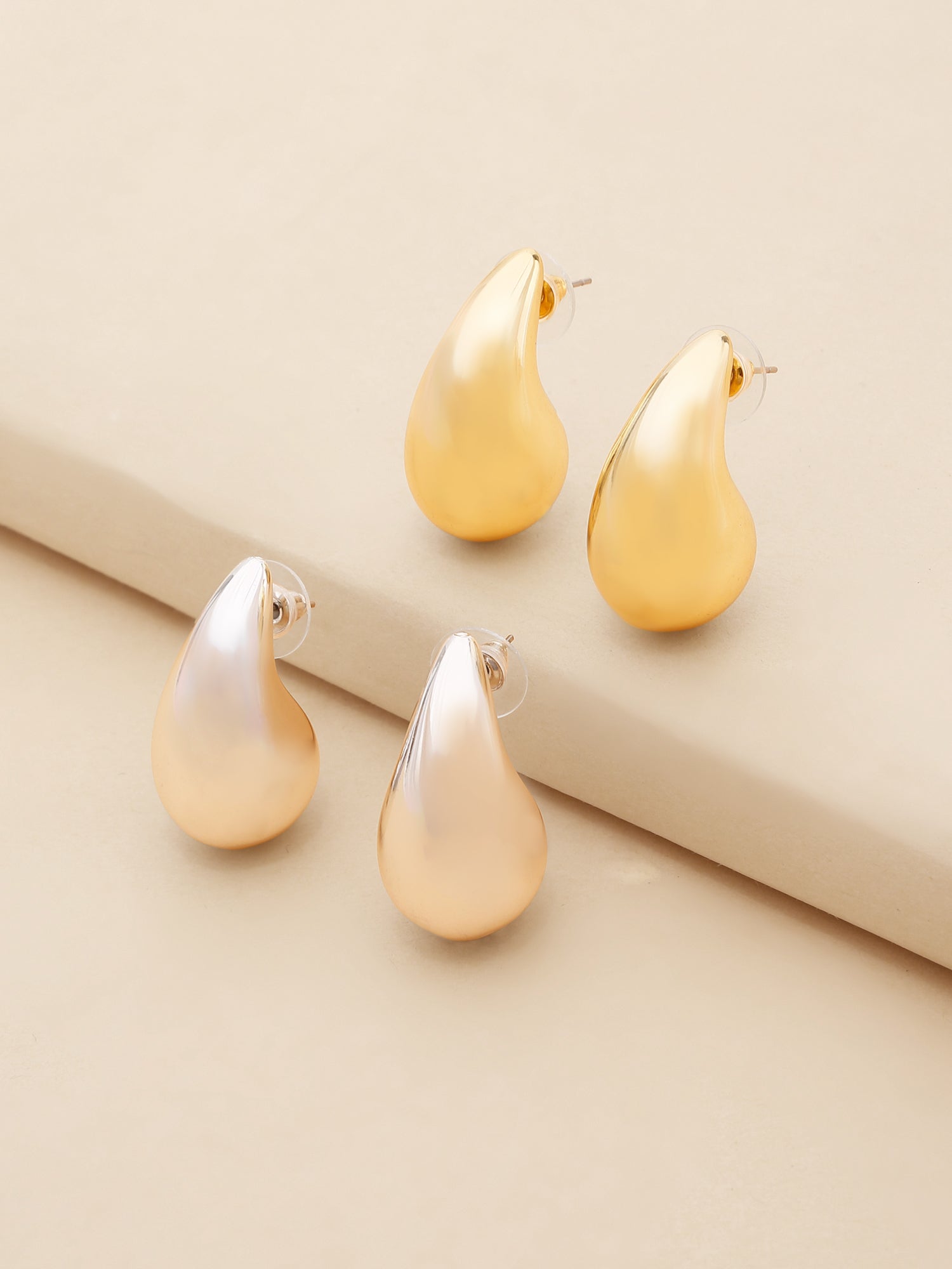 The Statement Drop Shape Earrings come in a dual-toned gold and silver finish. This 2-piece set gives you styling flexibility - wear gold for a striking look or silver for subtle charm.