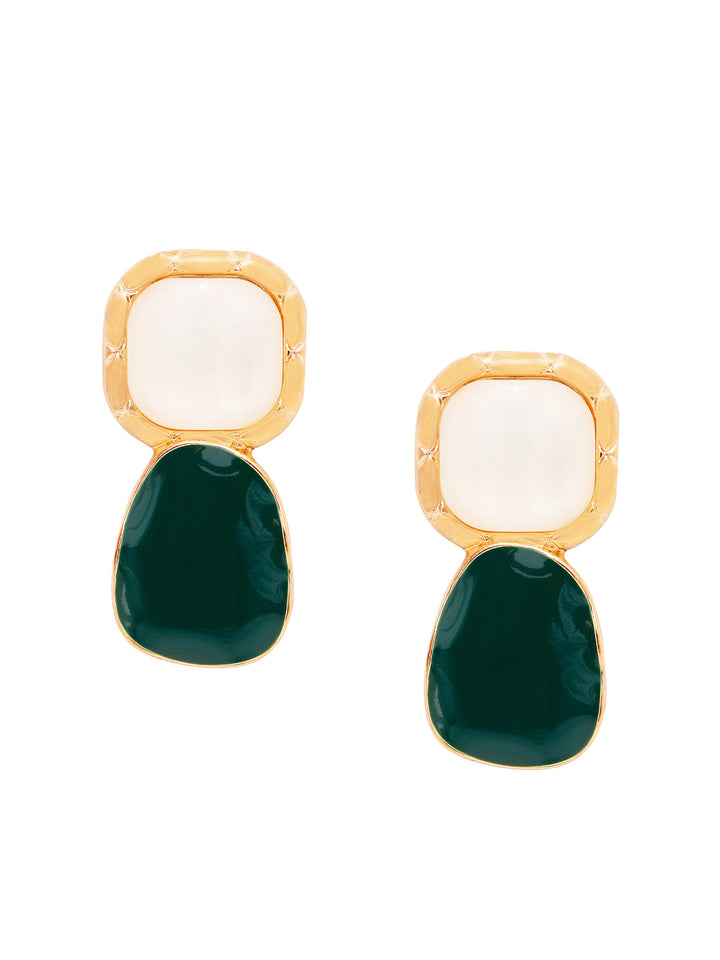 The Green Statement Stone Drop Earring is a celebration of elegance and vibrancy. Featuring a striking green stone paired with pearl detailing in a gold-plated frame, these earrings bring a refreshing pop of color to your look. Stylish, waterproof, and lightweight, they are perfect for special occasions or festive gatherings.