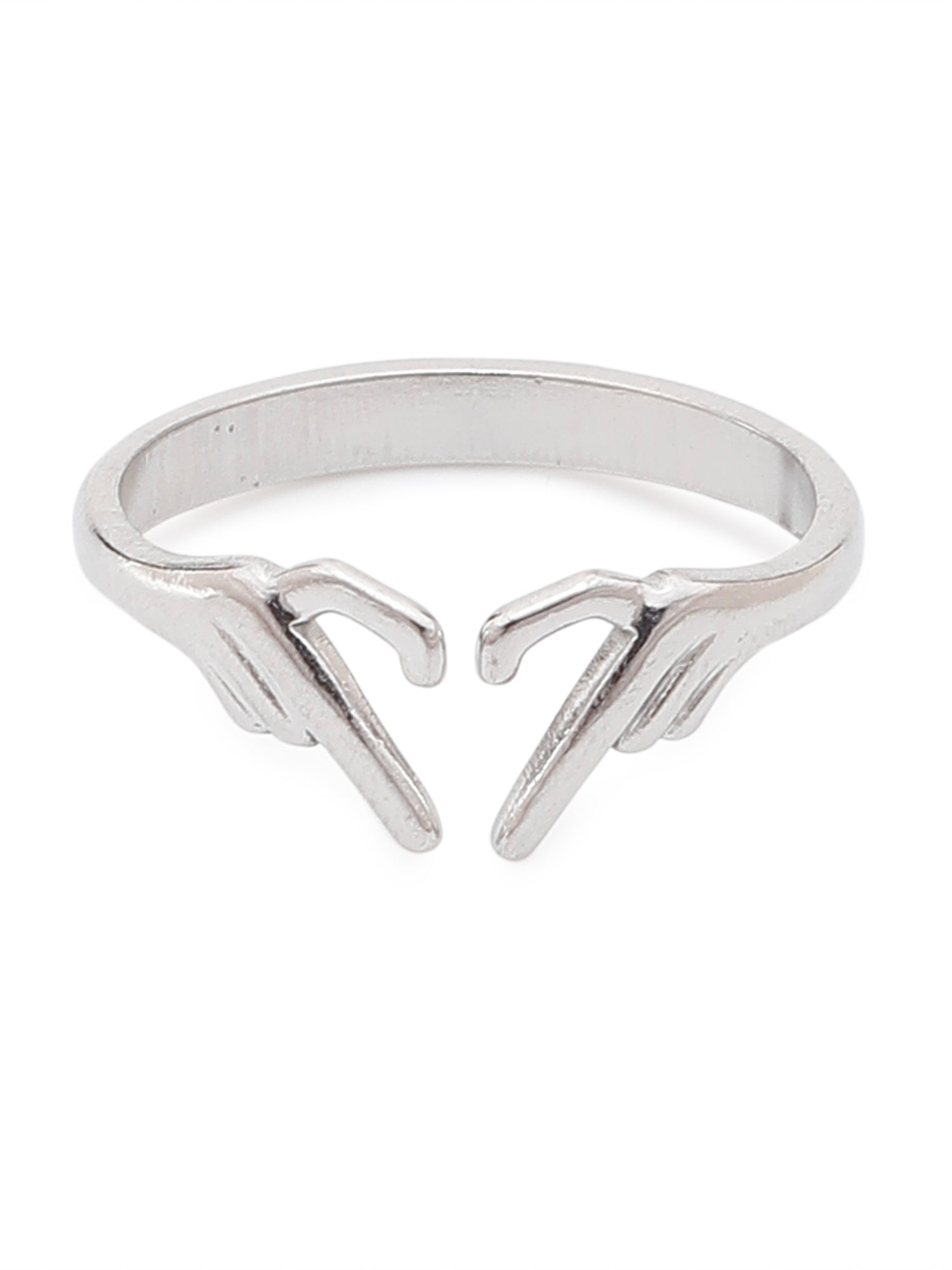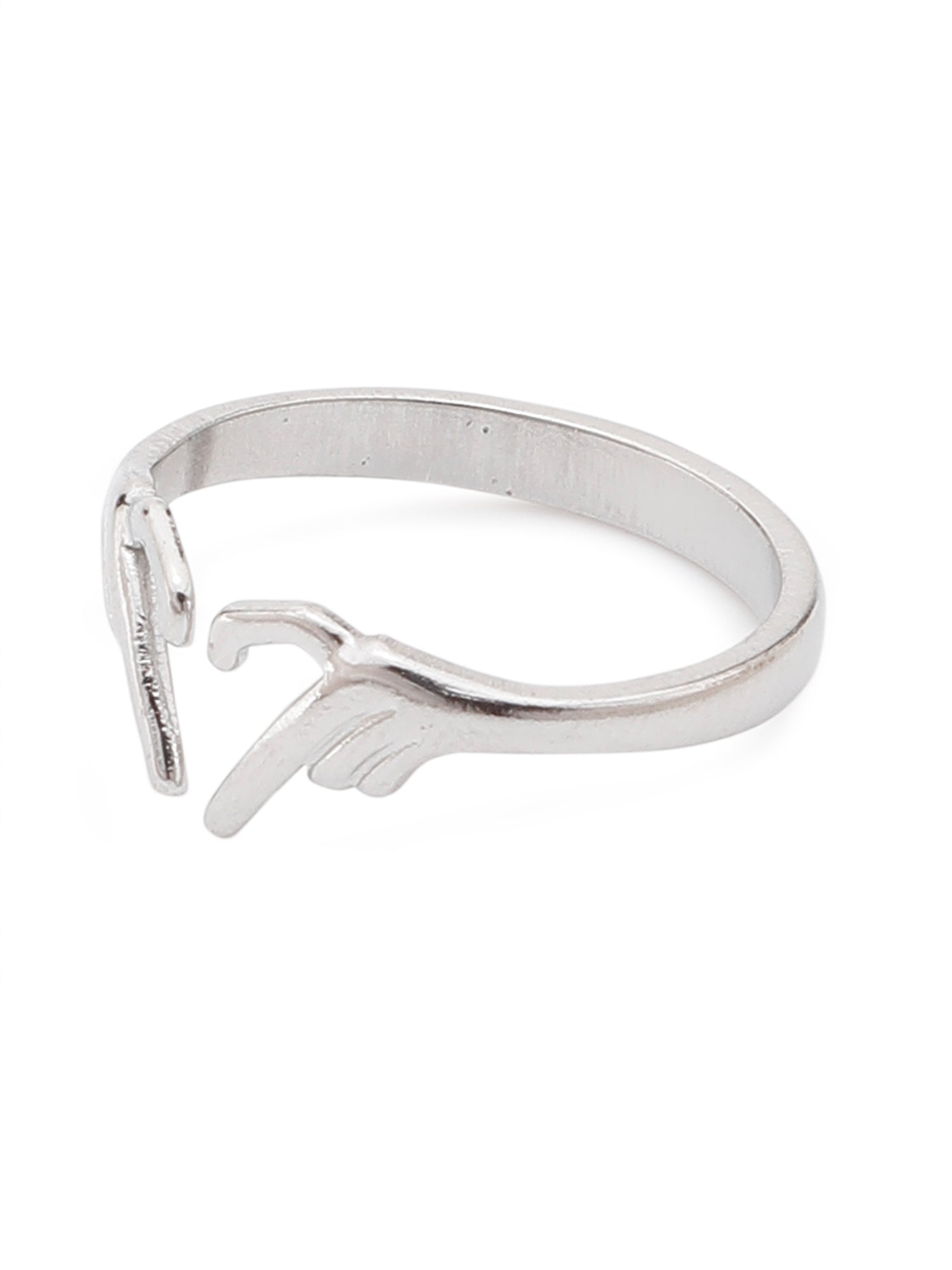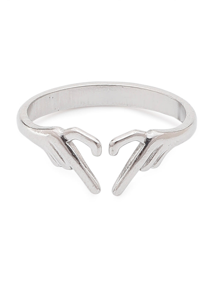 A symbol of love, connection, and individuality . The Silver Heart Hands Shaped Ring is designed for women who like jewellery that tells a story. With its unique hand-shaped design forming a heart, this adjustable ring is perfect for everyday essentials, parties, vacations, or campus cool fits.
