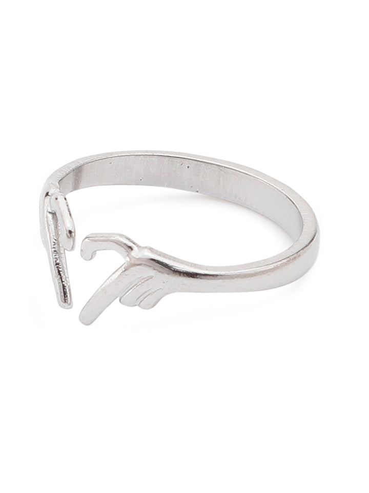 Silver Adjustable Heart Hands Ring