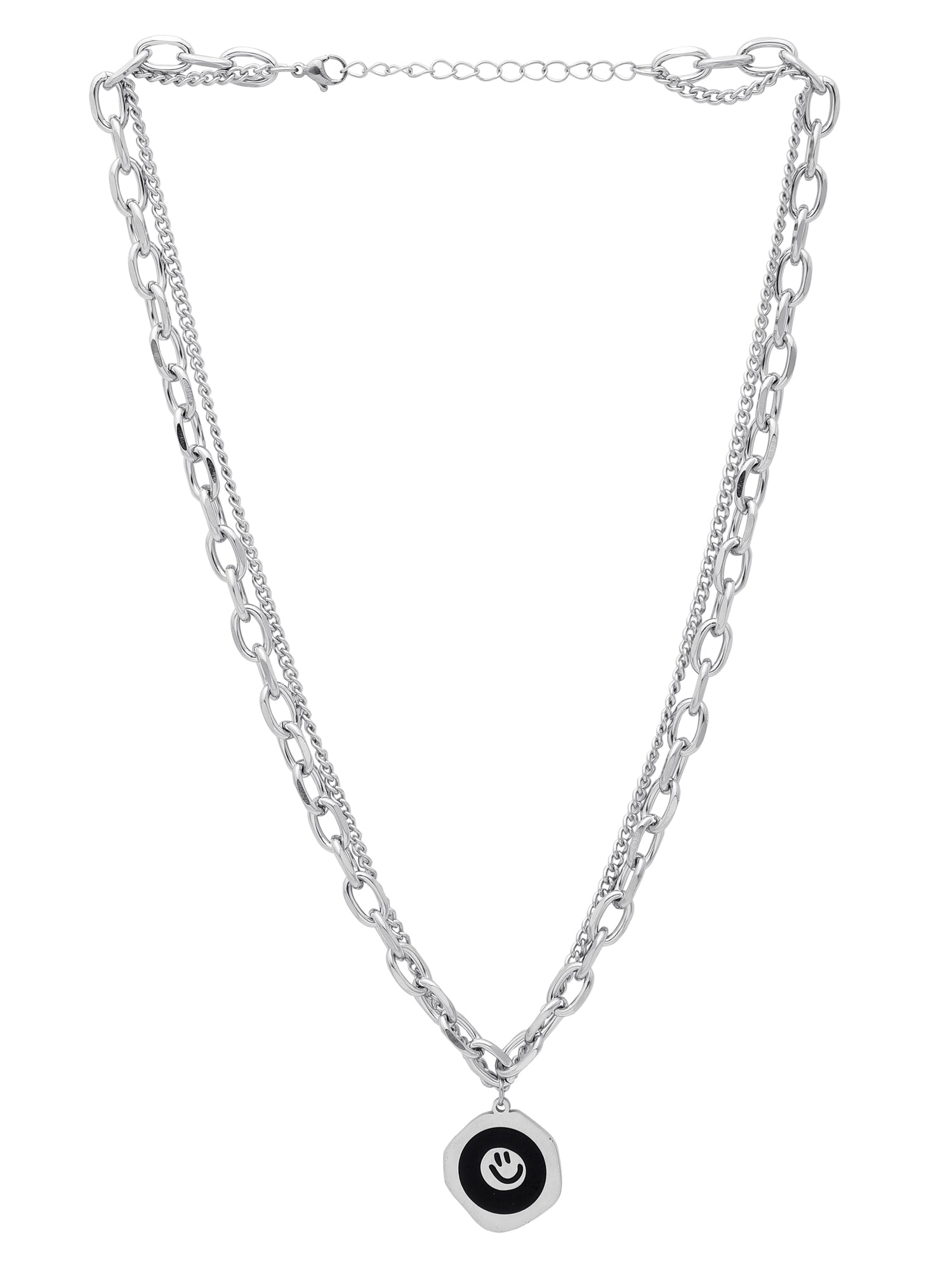 Silver Smiley Face Pendant Necklace – Layered Dual Tone