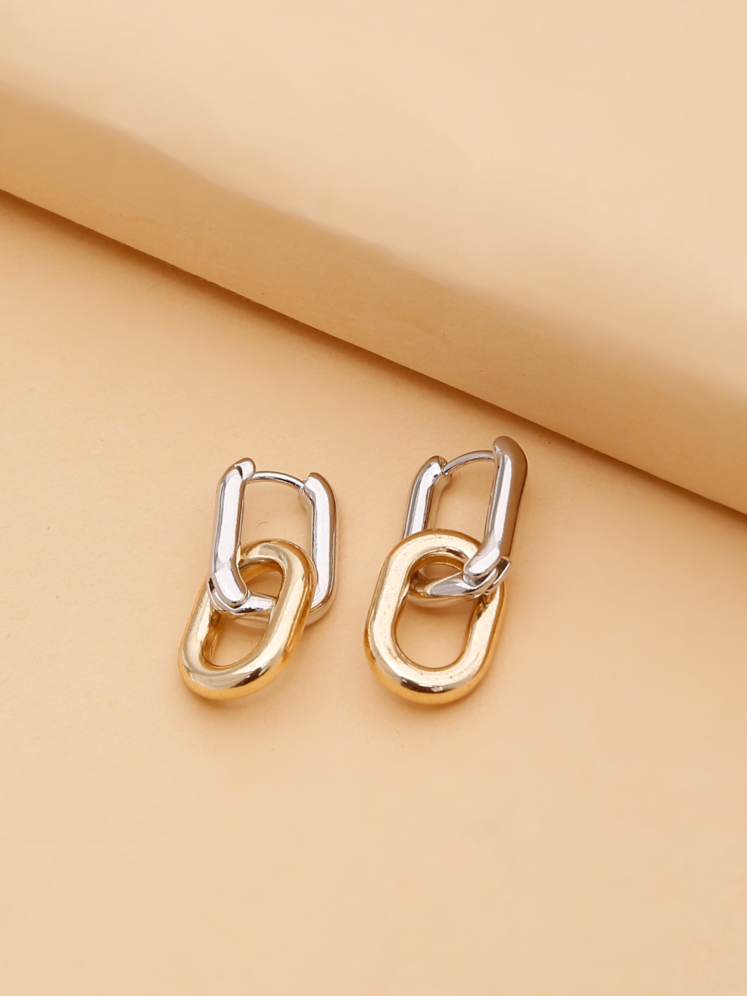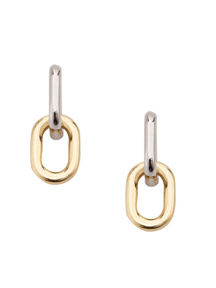 18k Gold Plated Two-Tone Chunky Chain Drop Earrings